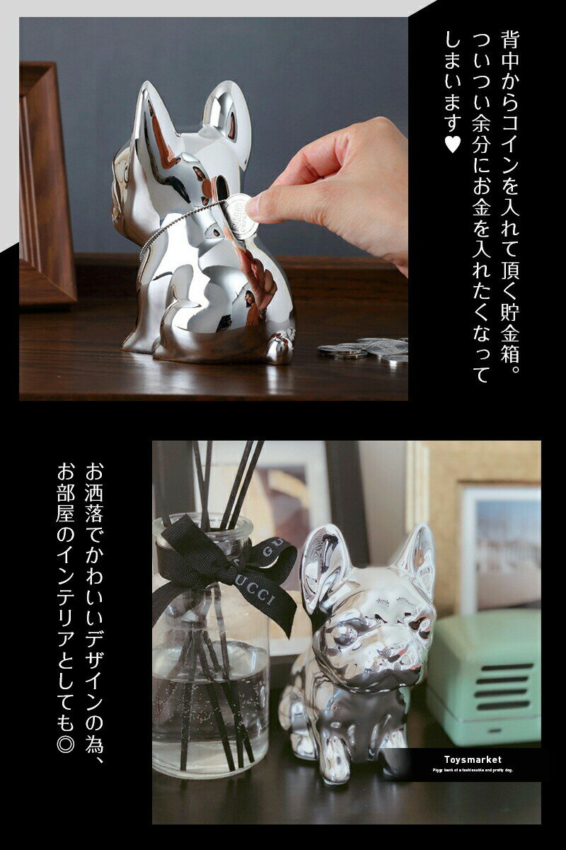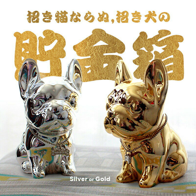 ・ゴールドとシルバーのオシャレで可愛い犬の貯金箱です。