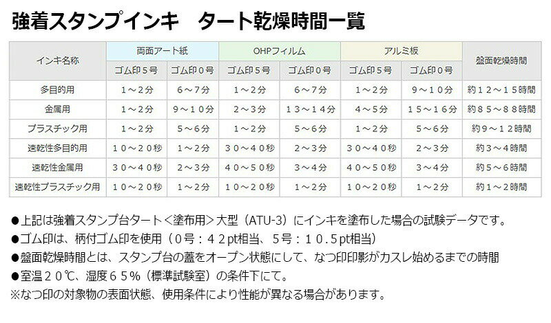 注意点 ※強着スタンプインキ タートの<速乾性金属用>は強着スタンプ台 タート<塗布用>に塗布して使用してください。